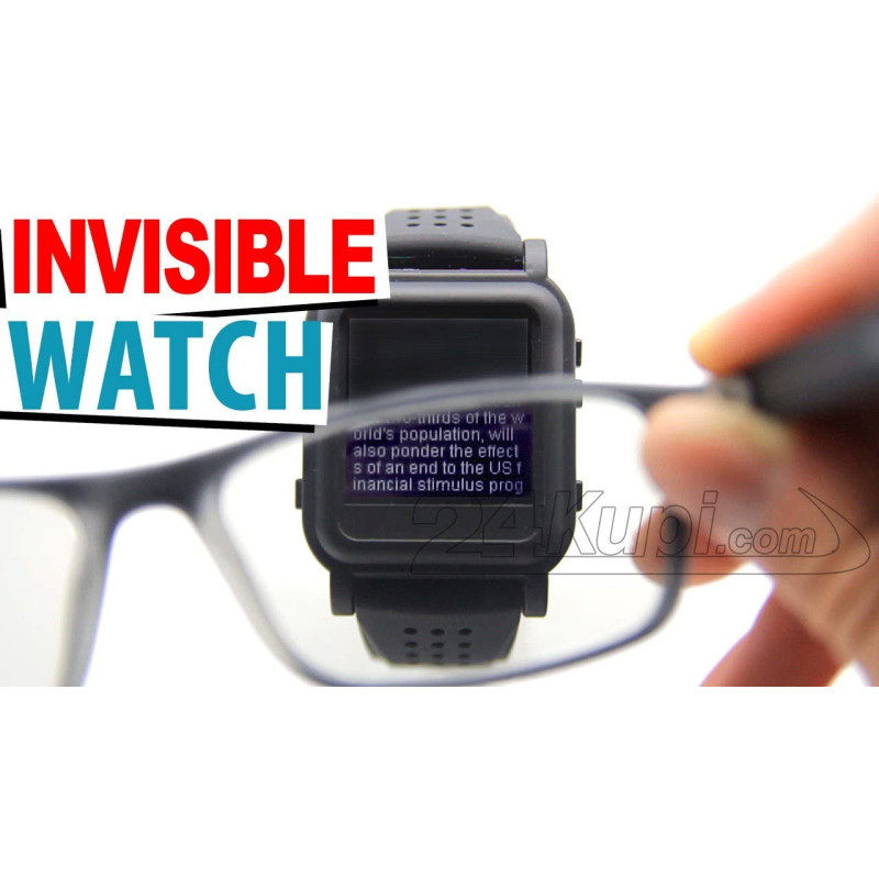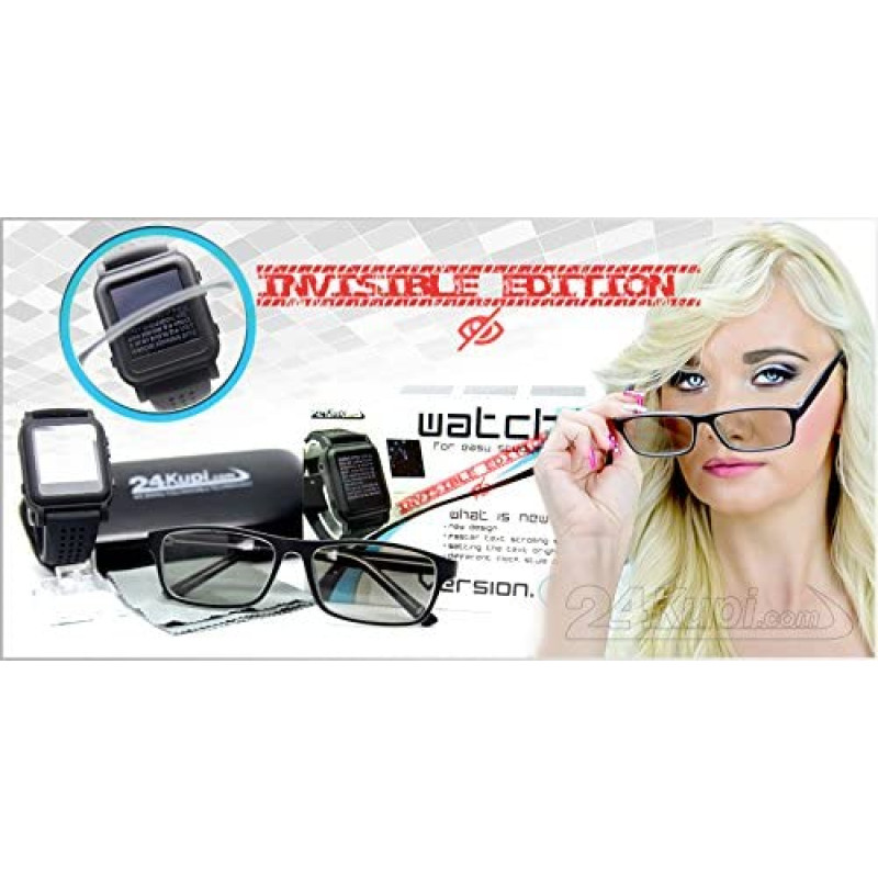 24Kupi is Bringing you , the new innovative Invisible technology Introducing the Invisible Watch We have created the new generation of the screen on the watch, making it black, that way the watch looks that is turd off , so no one will get suspicious . Also we have make unique glasses , which are allowing you to see the content on the black screen, that way only you will be able to see the hidden content on the watch And to everybody around you the watch will look that is turned off Glasses are Unisex , made with High Quality , the frame of the glasses look as it is a for a real prescription glasses, and the lens are bit dimmed, there is no diopter on the lens The glasses comes with the case and patch The watch is our Easy studding V.2 model , it just has a special black screen for more info bout the watch click hear IMPORTANT !! YOU ARE UNABLE TO SEE THE CONTENT OF THE WATCH WITHOUT GLASSES. The glasses and the watch are included in the INVISIBLE EDITION package The package Contains - Easy studding V.2 -USB cable -Manual -Headphones - Box -24kupi Glasses -Case -patch Soon we will have more invisible devices available in offer