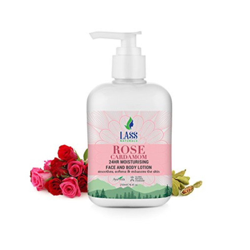 Lass Naturals Rose Cardamom 24 HR Moisturising Face & Body Lotion 250 ml - Body Care