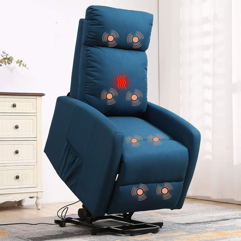 Massage Recliner Chair for Elderly Electric Power Lift Chair Sofa Reading Chair Living Room Chairs Fabric Reclining Chair Ergonomic Heated Lazyboy Bedroom Home Theater Seating Recliners,Blue