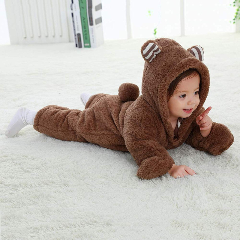 Cute rompers for baby boys and girls. Using high quality cotton as lining and warm velvet cover, these material makes this infant bodysuit soft comfortable and warm.The hoodie whole body jumpsuit design,Protect baby and Keep baby warm. You can use it as a tracksuit at home, a costume in party, a playwear outside, a snowsuit in snowing winter, it is the best choice as a gift in winter for the newborn baby.