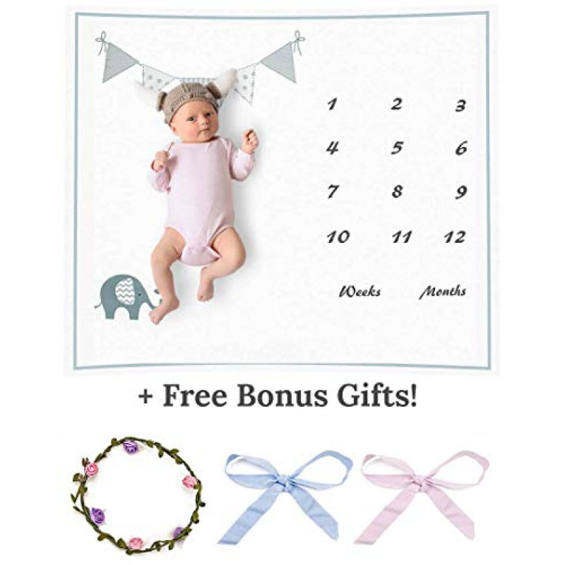 Monthly Baby Milestone Blanket – (Boy/Girl Lace Ribbons and Wreath Frame Included) Infant Photography Props for Backdrop, Photo Shoot, Shower, New Gifts