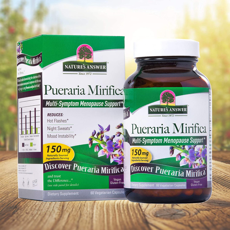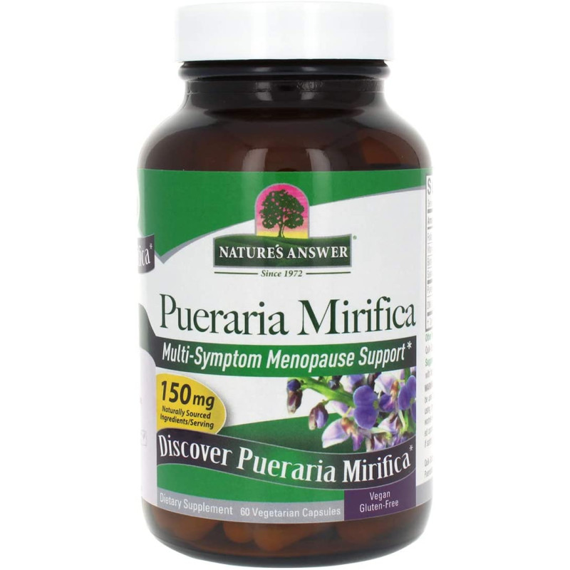- With this unique combination of natural ingredients Nature’s Answer Pueraria Mirifica is an excellent choice for women approaching menopause, since it reduces hot flashes, night sweats and mood instability so often associated with Menopause.*