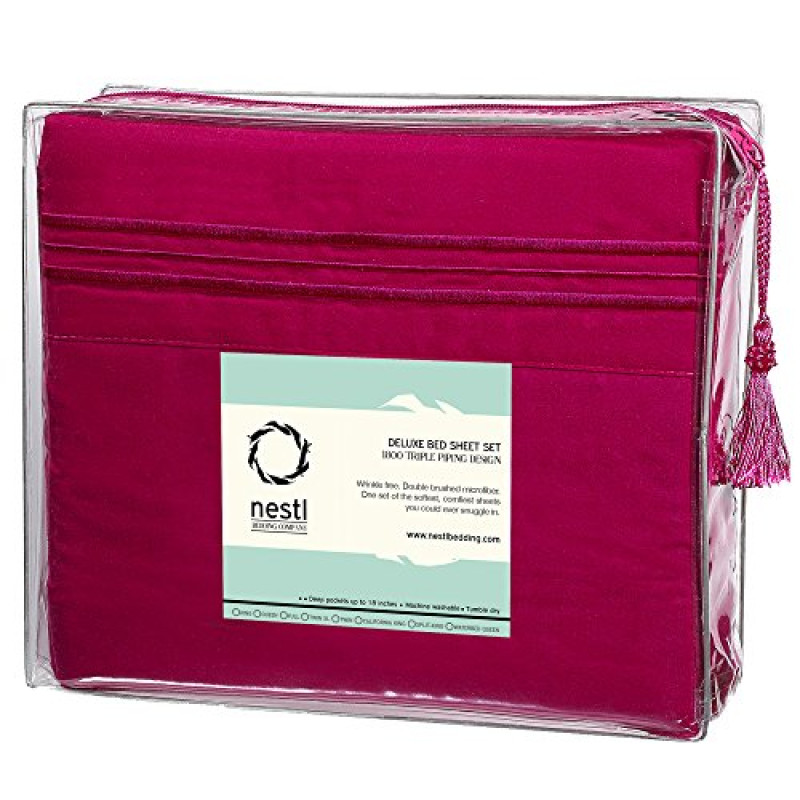 Nestl Bedding 3 Piece Sheet Set - 1800 Deep Pocket Bed Sheet Set - Hotel Luxury Double Brushed Microfiber Sheets - Deep Pocket Fitted Sheet, Flat Sheet, Pillow Cases, Twin XL - Magenta