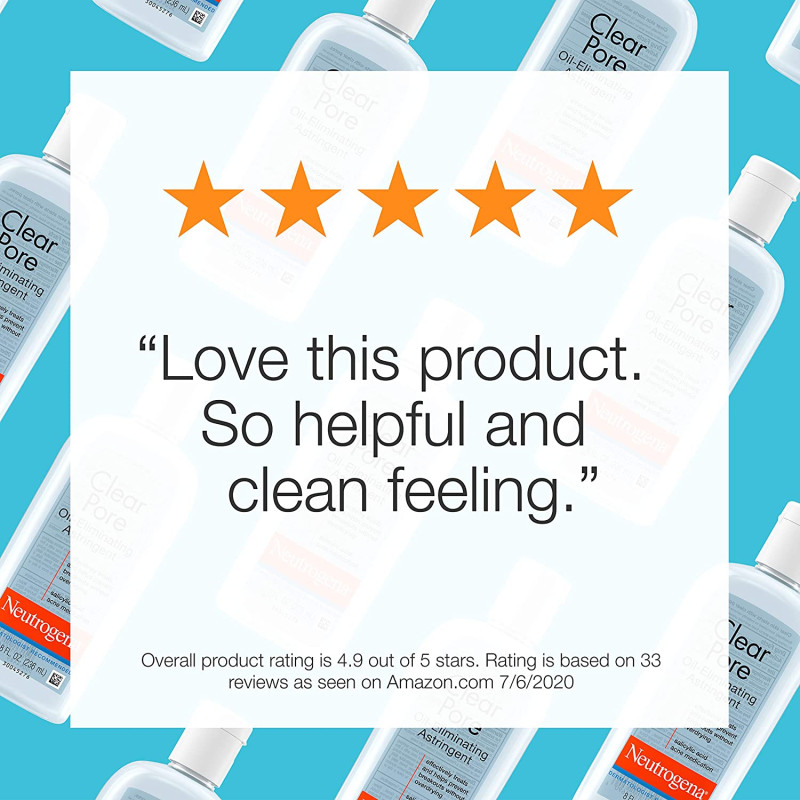 Neutrogena Clear Pore Oil-Eliminating Astringent is specially formulated for acne-prone skin. This facial astringent cleans deep down into pores to help remove dirt, oil, and makeup that can clog pores and cause breakouts. The maximum-strength oil-eliminating formula contains salicylic acid, an acne-fighting ingredient recommended by dermatologists, to effectively treat and help prevent future breakouts without over-drying. Gentle enough for use morning, afternoon, and night, the acne astringent helps eliminate and control surface oil without over-drying or irritating skin.