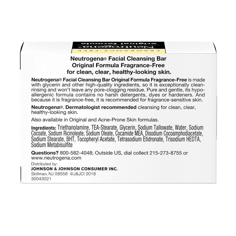 - 3.5-ounce Neutrogena Facial Cleansing Bar in Original Fragrance-Free Formula for gentle, daily facial cleansing from a dermatologist-recommended skin care brand