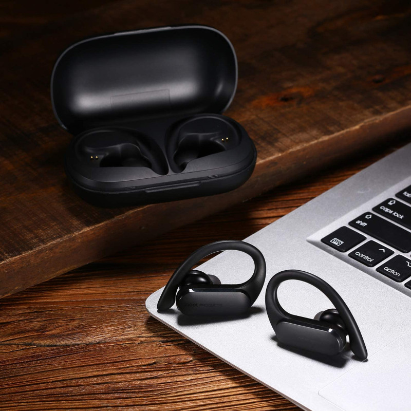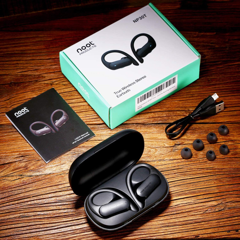 Noot Products NP30T - True Wireless Earbuds with Ear Hooks - Bluetooth 5.0 - Total Battery 27 Hours - Noise Isolation - Microphone - Volume/Touch Control - for Sport, Running, Workout, Voice Calls