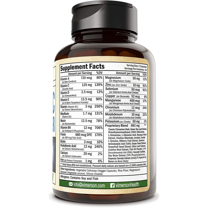 - Why choose us: Are you experiencing mental fog and lack of clarity? Do you feel sluggish and slow? Vimerson Health may boost your brain function* with this perfectly combined daily multivitamin and mineral supplement; This supplement promotes enhanced memory and focus*, supports oxygen flow to the brain*, helps replenish neurotransmitters*, and encourages metabolism and energy*