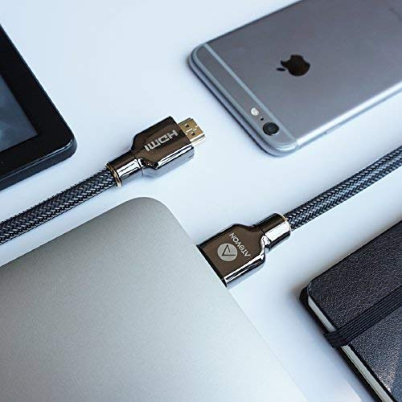 【High-speed Data Capacity】Atevon 3.3 feet HDMI Cable supports HDMI 2.0b including 18 Gbps, Mirror & Extend mode, UltraHD 4K 2160p (up to 60 Hz 4:4:4), HD 2K 1080p (up to 240 Hz), QHD 1440p (up to 144 Hz), HDCP 2.2, 48-Bit Deep Color, Audio Return(ARC), Dolby TrueHD 7.1 audio and Hot plugging.【Universal Compatibility】Designed for all devices with HDMI 2.0 standard and backwards compatible with HDMI 1.4, 1.3 & 1.2. Easily connects your streaming devices, Apple TV 4K, NVIDIA SHIELD TV, CD/DVD/Blu-ray players, Fire TV, Roku Ultra, PS3/4, Xbox One/360, Nintendo Switch, computers, or other HDMI-enabled devices to your 4K/HD TV, monitors, displays or projectors.