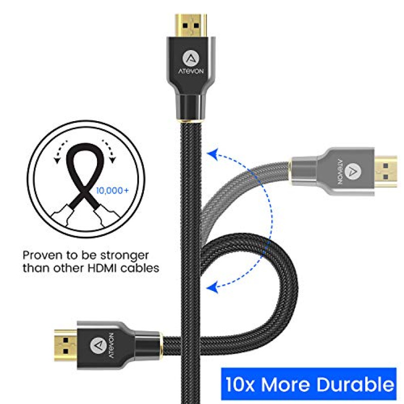 4K HDMI Cable 3.3 Feet - Atevon High Speed 18Gbps HDMI 2.0 Cable - HDCP 2.2-4K HDR, 3D, 2160P, 1080P, Ethernet - 28AWG Braided HDMI Cord - Audio Return - UHD TV, Blu-ray Player, PC, Xbox One S, PS4