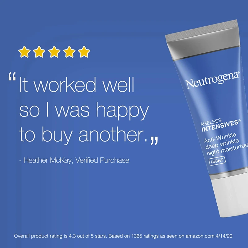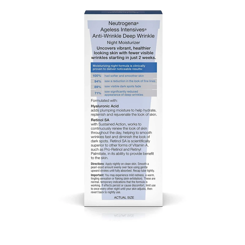 - Neutrogena Ageless Intensives Anti-Wrinkle Deep Wrinkle Night Moisturizer with Retinol and Hyaluronic Acid uncovers vibrant, healthier looking skin with less visible wrinkles starting in just two weeks.