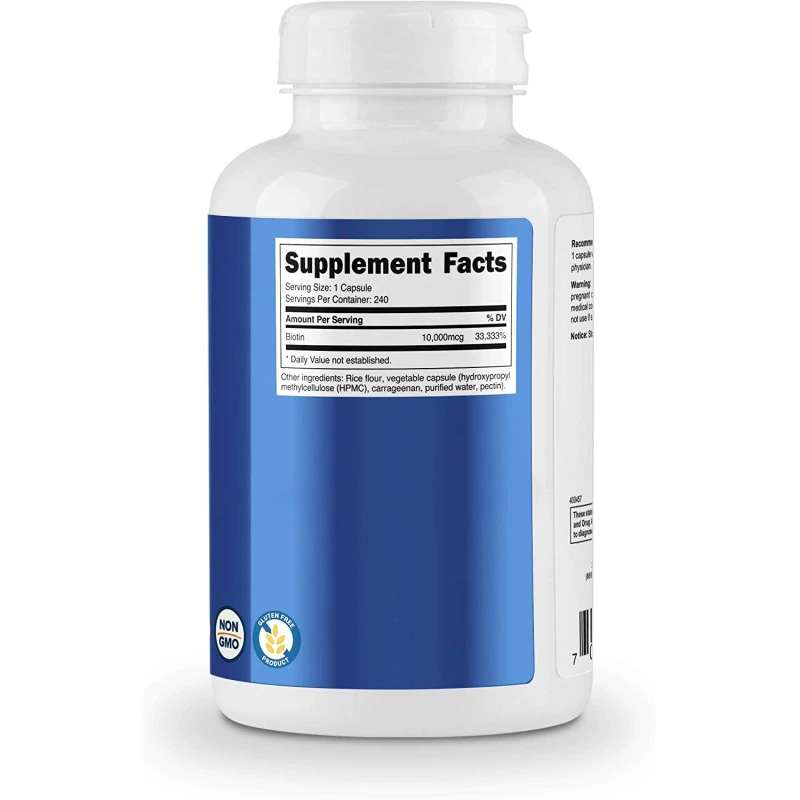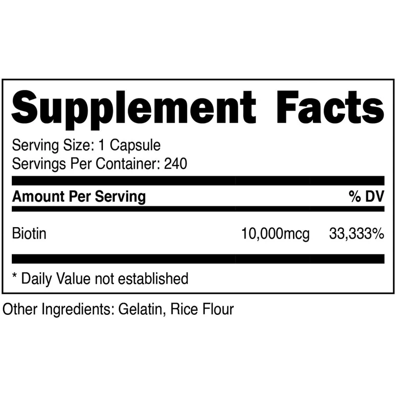 - Biotin(Vitamin B7) - 240 Capsules With 10,000 MCG’s Of High Quality Biotin Per Capsule