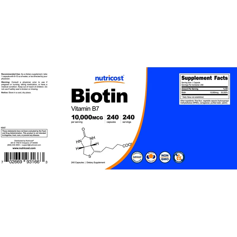 - Nutricost Biotin is Non-GMO, Gluten Free, and 3rd Party Tested