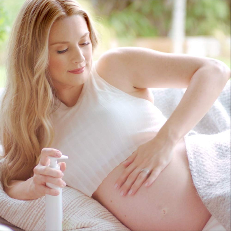 Cocoa Butter and Shea Butter work together to soften, smooth and plump skin while forming a protective moisture barrier for expanding bellies.