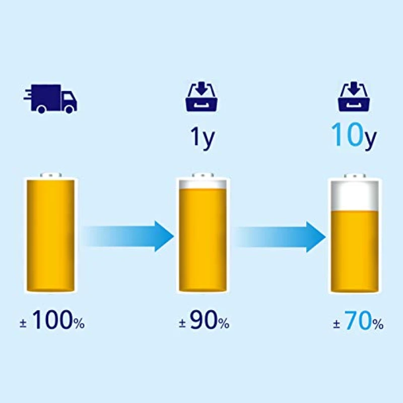 Charge up to an impressive 2,100 times, with a 70% self-discharge after 10 years.