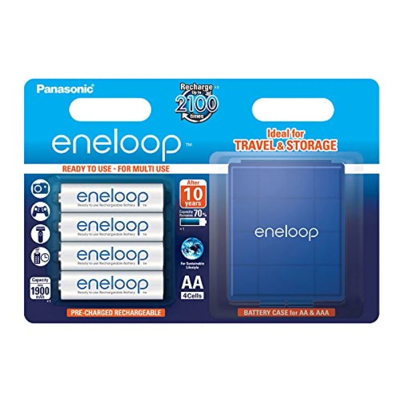- 1 x 4 Panasonic eneloop AA Mignon (1900 mAh + battery case