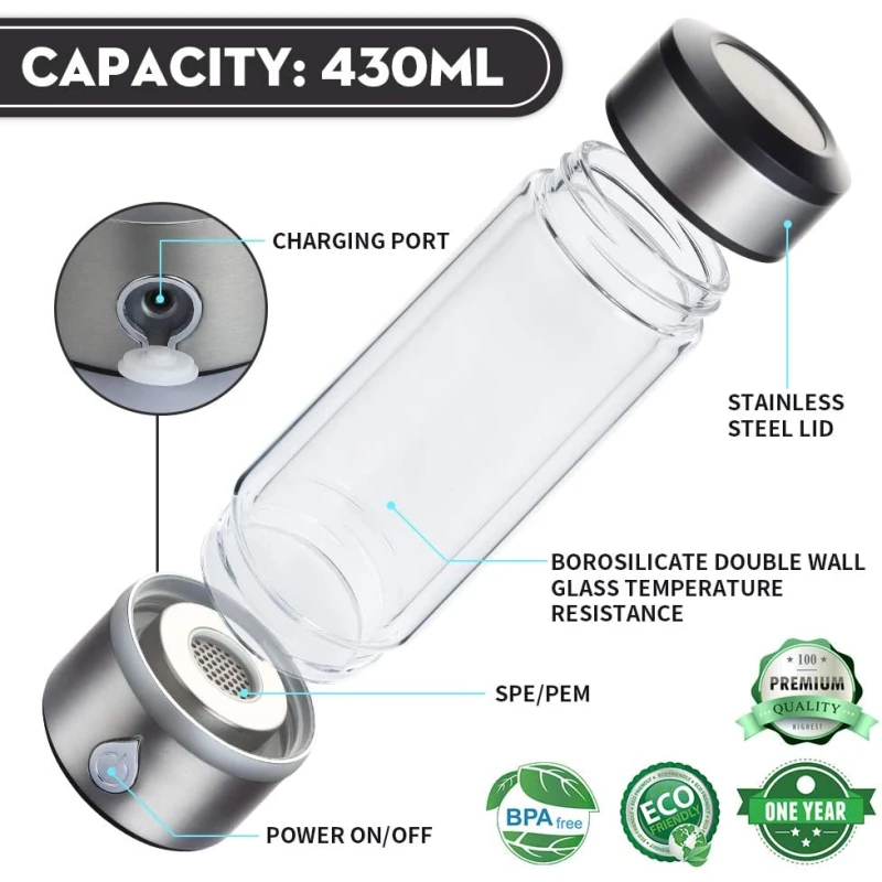 Portable Hydrogen-Rich Water Glass Rechargeable ion Water Generator Hydrogen-Rich Water Cup Generator Water Glass Cup Health Cup