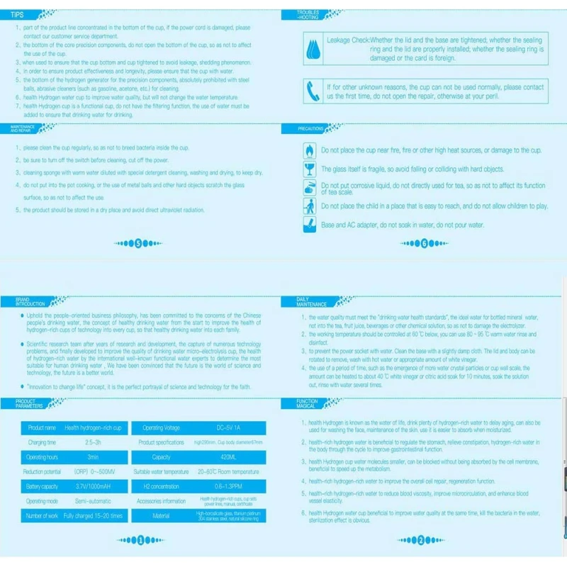 Operating temperature: 0-60 degrees Celsius Product scale: 600-900PPB Cup body material: borosilicate glass Product capacity: 360ML Product weight: 650g Rated voltage: 5V Maximum power: 4W
