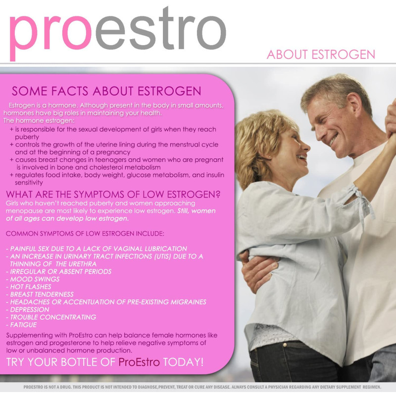 - ProEstro's formula can help increase estrogen levels in both women and men. Men should only take this product if they desire an increase in estrogen.