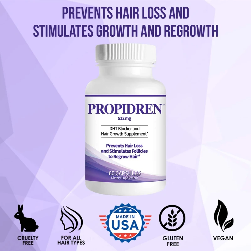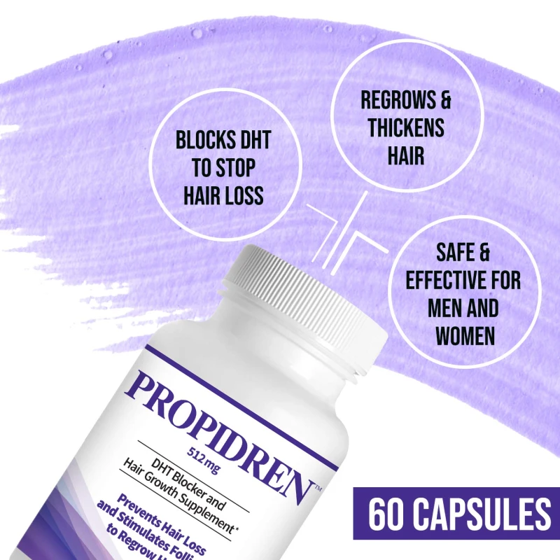 - Research on hair loss has shown that the primary factor in hair loss is the production of DHT. Propidren Hair Loss Supplements revolutionary formula contains clinically proven DHT blockers that work synergistically to stop hair loss and help regrow and thicken hair. Works for both men and women!