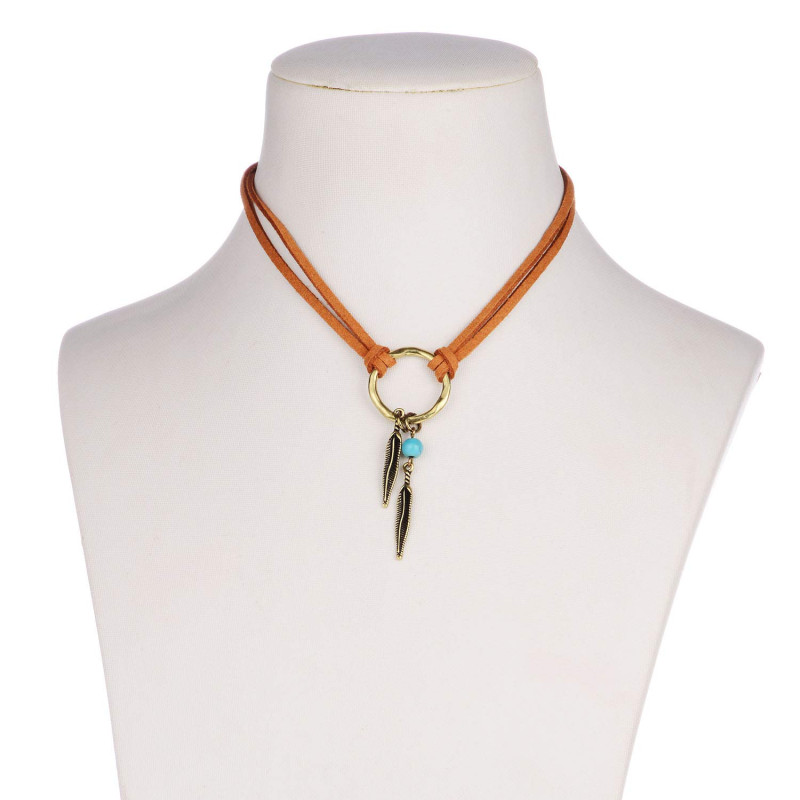 GORGEOUS AND FLATTERING ON - Items are picture shows,exclusivedainty necklace for women and girls.Made from suede leather cord, 22mm metal ring, feather charms, and 6mm turquoise gemstone bead.