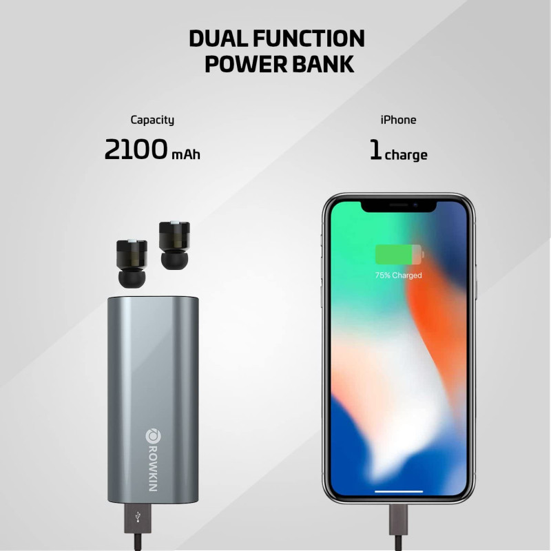 Rowkin Bit Stereo True Wireless In-Ear Headphones w/ Dual-Purpose Power Bank (NAAC10AB) - Space Gray