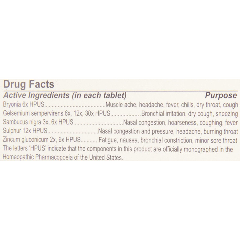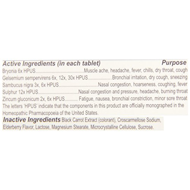 Contains (1) box of (30) quick dissolve tablets of Sambucol Black Elderberry Cold & Flu Relief.Sambucol Black Elderberry Cold & Flu Relief provides fast, temporary, homeopathic relief from cold & flu symptoms like nasal and sinus congestion, runny nose, sore throat, coughing, sneezing, chills & fever. Take at the first sign of cold and flu symptoms.