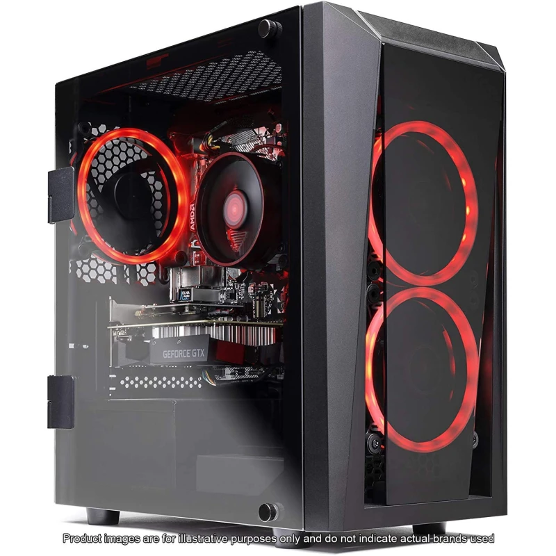 Why settle for mediocrity? Leap forward into SkyTech Blaze II series with the newest architectures from AMD and NVIDIA Powered by AMD Ryzen 5 Chipset this 6-core processor delivers great performance with a base speed of 3 4 Ghz SkyTech Blaze II delivers the best price performance value gaming rig in the market The SkyTech Blaze II offers the best gaming computer built up to date with the AMD Ryzen 5 2600 Processor and NVIDIA GeForce GTX 1650 4G Graphic Card that can easily run popular games such as Fortnite CS GO League of Legend (LOL) APEX Legends Player Unknown Battleground (PUBG) Battlefield V Anthem The Division 2 Overwatch and more at 60 FPS+ 1080P at high to Ultra setting Specification Processor AMD Ryzen 5 2600 6-Core 3 4 GHz (3 9 GHz Max Boost) processor Motherboard A320M Motherboard Video Card NVIDIA GeForce GTX 1650 4GB Video Card (Brand may vary) Memory 8GB DDR4 3000 Gaming Memory with Heat Spreader Power Supply 500 Watt 80 PLUS Certified Power Supply SSD 500GB SSD – Up to 30x Faster Than Traditional HDD Operating System Microsoft Windows 10 Home 64-bit Case Skytech mATX Mid-Tower Tempered Glass Gaming Case Fans 3 x 120mm Ring RGB Fans