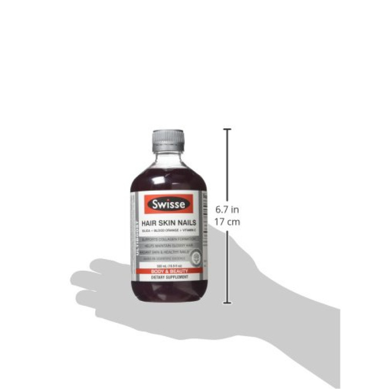 Swisse Ultiboost Hair Skin Nails Liquid Supplement, 500 ml, Beauty Formula, Contains Vitamin C, Iron, Zinc to Supports Collagen Production for Healthy Hair, Skin and Nails*