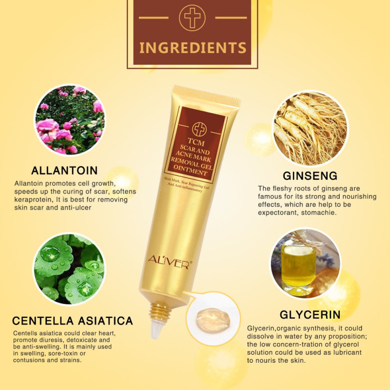 - Acne Scar Removal Cream:TCM Scar Cream effectively remove acne pits, acne scars, insect bite marks, scraping marks, burn scars surgical scars and other scars affecting the appearance