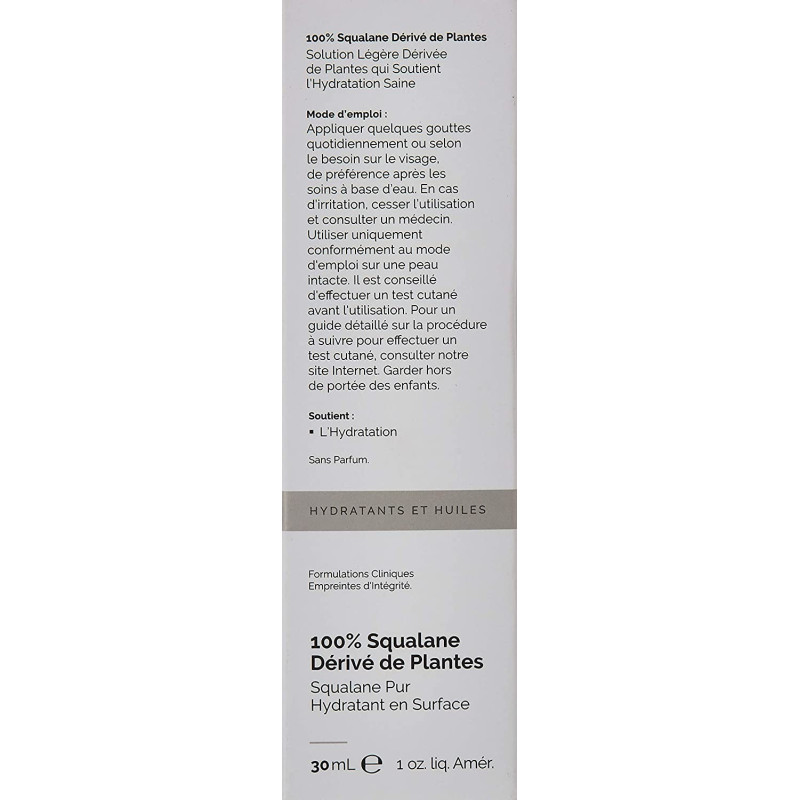 Squalane is a saturated and stable hydrocarbon that delivers exceptional moisture retention properties and can help prevent transdermal moisture loss. Suitable for all skin types, it has been sustainably sourced and is non-comedogenic to avoid clogging pores. It makes skin feel replenished and supple, and can also be applied to hair for enhanced heat protection, optimal shine and minimise breakage and help to reduce the ongoing loss of hydration that weakens dermal elasticity and suppleness. INGREDIENTS: Squalane. DIRECTIONS: Apply a few drops daily or as needed to the entire face ideally after water-based treatments. REMINDER: If irritation occurs, cease use and consult a physician. Use only as directed on unbroken skin. Patch testing prior to use is advised.