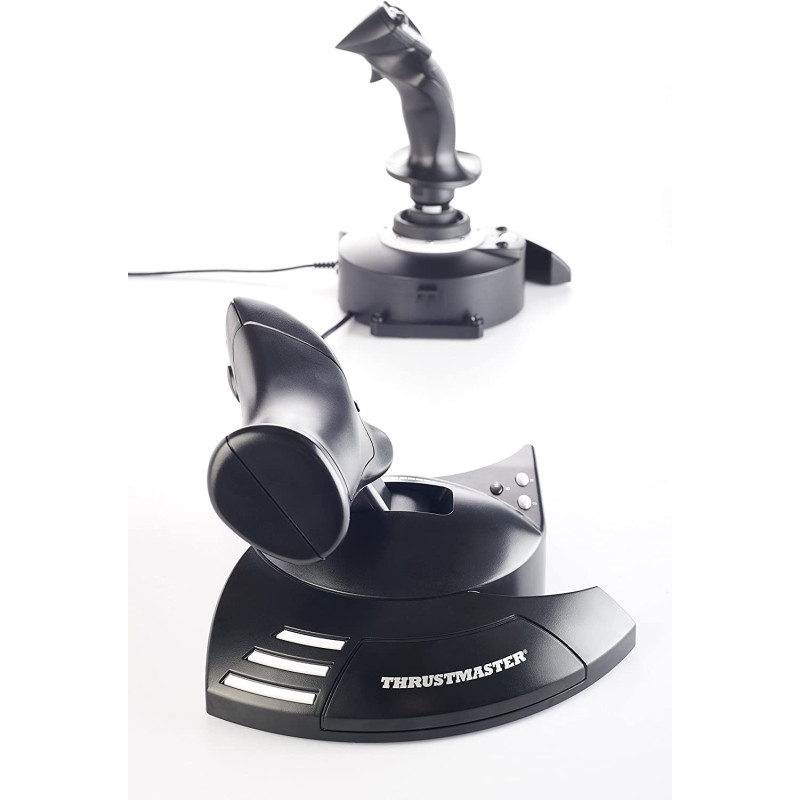 T.Flight Hotas One, an officially-licensed joystick for Xbox One and Windows, provides a high level of realism: the stick includes five axes, fourteen action buttons, a rapid-fire trigger and a multidirectional hat switch (navigation/panoramic view), all of which are easily accessible. The throttle - detachable and full-size for easy maneuverability, even in virtual reality - provides super-responsive power. The dual rudder system can be engaged by rotating the handle (with an integrated locking system) or via the progressive tilting lever. The T.Flight Hotas One includes official buttons for the Xbox One console (Guide/View/Menu): access social features, switch between the game and the console, navigate through the console's menus, etc.