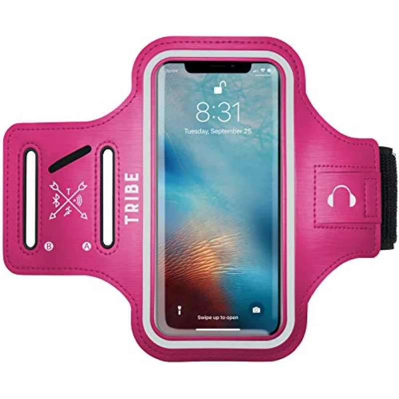 UNIVERSAL PHONE ARMBAND - Our premium running armband is designed to fit all plus size smartphones (see fitment guide below). A perfect hands-free solution for your smartphone so you can focus on your workouts. Enhanced with weatherproof technology to keep your phone safe and protected from rain or sweat, and an extra-thick reflective strip for safe running at night.FULL TOUCHSCREEN FUNCTIONALITY - Our encased running armband acts as a workout phone holder while offering full protection and allowing easy access to your phone's touchscreen functionality and headphone jack.