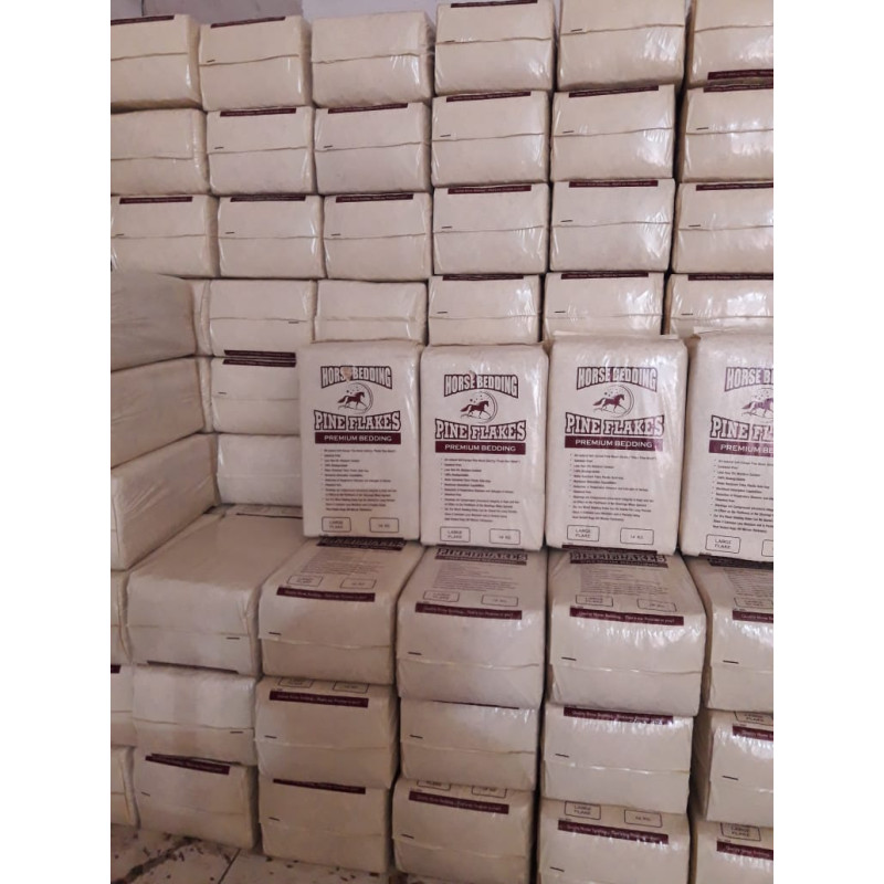 Pine flakes the premimum Horse bedding is the original mini flake pine shaving. Perfect for horse and other animal bedding. Precision textured for easy picking, kiln dried for extra absorbency. Horse bedding, whether pine shavings or pine pellets is one of the bigger expenses for any horse farm owner. we recognize the importance of reducing animal bedding costs while maintaining the level of horse care and cost management you require.