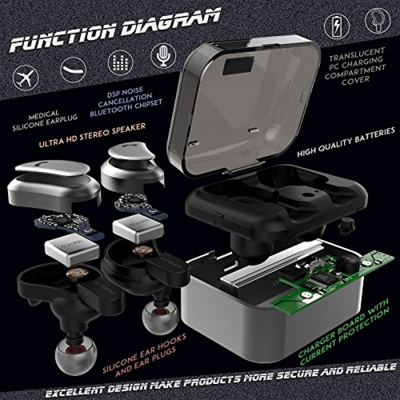 【Multi-functions Connectivity】 Twin mode: use 2 cordless earbuds simultaneously, enjoy 3D sound(only the right earbud works in the calling mode for privacy and safety ).Single mode: choose the right one or the left one,each Bluetooth headset can connect with two Bluetooth devices.