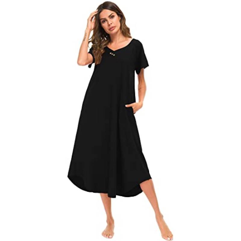 - Comfy nightshirt featuring short sleeve, stylish V neckline, three buttons are ornamental at the neckline, two side inseam pockets, side slit on the hem for easy movement and maximum sleeping comfort